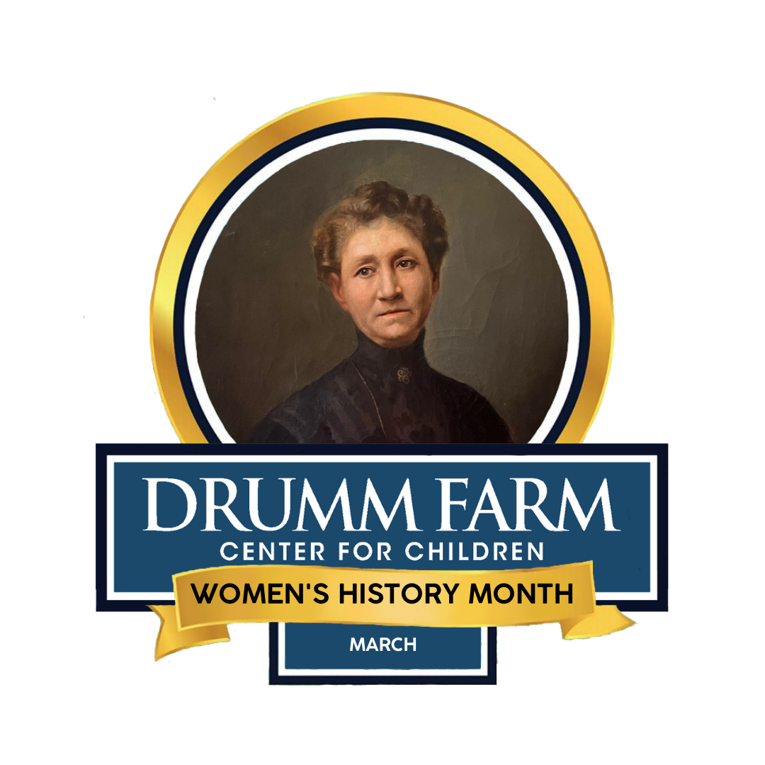 The Women's History Month logo, featuring a picture of Cordelia Drumm,
